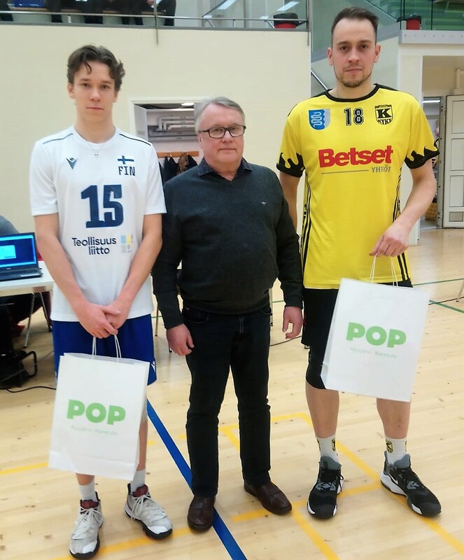 KyKy-Betset vs Murikat 3-1 (18-25)(25-14)(25-17)(25-20) KyKy-Betset mursi Murikat ja palasi voittojen tielle. FIN-20 tarjosi hyvän vastuksen ja joukkueet kohtaavat toistamiseen tammikuussa samassa salissa. Ottelun ensimmäinen erä meni Murikoille betonimiesten tarjoillessa tyyliin virhe, virhe, virhe... Kun toisen erän alkuun oli Venskin herätyspuheet kuunneltu, nähtiin kentällä virkeämpi KyKy-Betset. Hakkurina pelannut Aatu Pöllänen takoi pisteitä Petrun ja Väliahon veljesten kanssa. Betonimiesten kokoonpanossa nähtiin muutoksia edellisiin peleihin poiketen. Saarenmaan Olli huilasi selkäkrampin takia ja Henrik Heinänen sekä Jaakko Aninko hoitivat toista Yp:n paikkaa. Hemu Heinänen ja liberona pelannut Mosse Kostamo olivat eka erän jälkeen vastaanoton taitajia. Kuortaneen tilastojen mukaan vain 3 hyökkäys virhettä ja vahva syöttö olivat Betonimiesten aseet voittoon. Murikat myös pelasi hieman poikkeuksellisella kuusikolla, molempien joukkueiden kokoonpanot oli muokattu ennakoidusta. Kuortaneen passari Leevi Väänänen kunnostautui myös syöttöruudussa viekkaitten passien ohella. POP Pankki Kyyjärvi-Karstulan Tj. Urpo Ojala palkitsi parhaat, Väänäsen ohella KyKy-Betsetin Mikko Väliaho pokkasi kotiin viemistä. Sarja jatkuu KyKy-Betsetin osalta Tammikuun 8. päivä, silloin katsotaan KyKy-Betset toivottaa Tukijoilleen, Kannattajilleen, Talkoolaisilleen, Hyvää Joulua! Linkki Lentopalloliiton Tulospalvelusivustolle: Tästä Ottelut Ja Sarjataulukko: Facebookissa KyKy-Betset Kyyjärvi Ryhmä, Liity Ryhmään! |