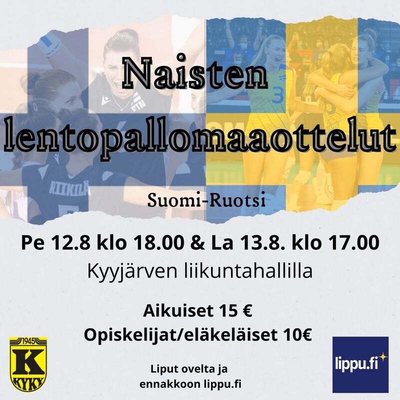 Naapurilähiö, kuka muistaa? No, se taisi olla entisajan tv-viihdettä. Nyt on tarjolla Kyyjärven liikuntahallissa naapureiden kohtaaminen. Suomi - Ruotsi, Naisten lentopallo maajoukkueet testaavat päivän kuntoa ja Ponttiset lattian sekä Betset seinien kestävyyttä. Paljon on Nopolan joessa vettä virrannut, joki on nähnyt Olympia soihtua ja Rautavaaran Tapion ja vaikka mitä. Nyt on taas Sahapakan leirin aika ja Suomen lentis naisten huipennus edessä. Ruotsin kohtaaminen on kenraaliharjoitus vuoden 2023 EM-kisojen karsinta otteluihin. Kolmekymmentä vuotta sitten kun liikuntahallia rakennettiin ja siitä komia elementti tunnus todisteena (lisäkuvissa). Kuka olisi arvannut että tällainenkin koitos hallissa nähdään. Kannattaa tulla seuraamaan, tätä herkkua ei ole Kyy York kissakaan tarjolla kovin usein. Suomi vs Ruotsi Perjantaina 12.8. Klo: 18:00 Kyyjärven Liikuntahallilla Suomi vs Ruotsi Lauantaina 13.8. Klo: 17:00 Kyyjärven Liikuntahallilla Liput: Aikuiset 15€, Opiskelijat / Eläkeläiset 10€ Liput ovelta tai ennakkoon lippu.fi: LENTOPALLON NAISTEN MAAOTTELU - osta viralliset liput | lippu.fi |