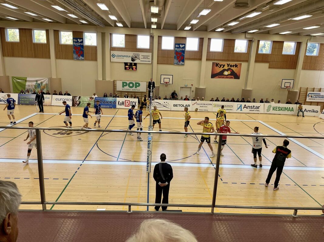 KyKy-Betset - Akaa-Volley 0-3 (23–25, 20–25, 20–25) KyKy-Betsetin 1. Mestaruusliigaottelun tunnelmia Kyyjärveltä: Miesten Mestaruusliigan kausi 2022-2023 saatiin käyntiin liiganousija Kyyjärven KyKy-Betsetin historian ensimmäisellä liigapelillä sunnuntaina. Viime kauden pronssijoukkue Akaa-Volley kuittasi sarjapisteet kolmessa erässä. KyKy-Betsetin pyhättöön oli saapunut hallin ennätys yleisö 532 kannustajaa. Mestaruusliigan ensikertalainen KyKy-Betset haastoi tosissaan viime kauden pronssijoukkueen Akaa-Volleyn. Akaan voiton takana oli vahva hyökkäyspeli ja puolustus, joihin kotijoukkue ei löytänyt lääkettä. Molempien joukkueiden syöttövastaanotto toimi. Akaa-Volley pelasi vähemmillä virheillä kuin kotijoukkue. Kotijoukkueen paras pisteen tekijä oli Oskari Keskinen ja Akaa-Volleylta Ali Fazli. KyKy-Betsetin liiga-avaus antoi lupauksia tuleviin peleihin ja todisti, että joukkue on valmis liigaan. Tehty työ ei ole mennyt hukkaan. Ottelun parhaina pelaajina palkittiin kummankin joukkueen hakkurit: Joukkueiden kapteenien ja valmentajien kommentit ottelusta: Tommi Siirilä KyKy-Betset - Kiva päivä ja hieno tunnelma. Tietysti harmittaa tuo, että pienestä kiinni, ei voi olla 3-0 häviöön tyytyväinen. Paljon hyviä juttuja, todistettiin itselle ja muille, että syöttövastaanotossa pysytään mukana ja huolimattomuusvirheitä pois niin päästään pitkälle. Toivotaan, että saadaan buumia vielä nostettua ja saadaan tunnelmaa halliin jatkossakin. Panu Pitkänen Akaa-Volley - Oli hienoa pelata vanhassa kotisalissa ja tunnelma oli hyvä sekä pelintaso hyvä. Mukava kauden avaus. Oman joukkueen peli on hyvää muttei vielä valmista. Eduard Venski KyKy-Betset - Syöttö-vastaanotto toimi. Emme voi sanoa, että pelasimme huonosti, mutta teimme liikaa virheitä. Puolustus ja torjunta peliä pitää kehittää. Olli Kunnari Akaa-Volley - Meidän hyökkäys oli korkealla tasolla ja yksi ainoa suora hyökkäysvirhe kauden ensimmäisessä pelissä niin siihen pitää olla tyytyväinen ja siihen peli tänään varmaan ratkesi. Oma peli ei ole vielä valmista ja tänään syöttövastaanotto ei ollut sillä tasolla missä haluttaisi, että siinä pitää tehdä vielä töitä. Ottelun tilastot: Competition Site by Data Project Mestaruusliigan Ottelut, sarjataulukko, tilastot: Competition Site by Data Project |