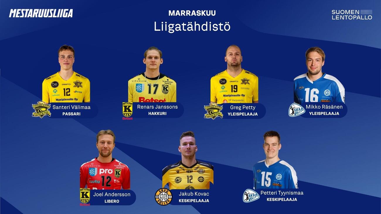 KyKy-Betsetin Hakkuri Renars Jansons ja Libero Joel Andersson on valittu Miesten Mestaruusliigan Marraskuun Tähdistökentälliseen
