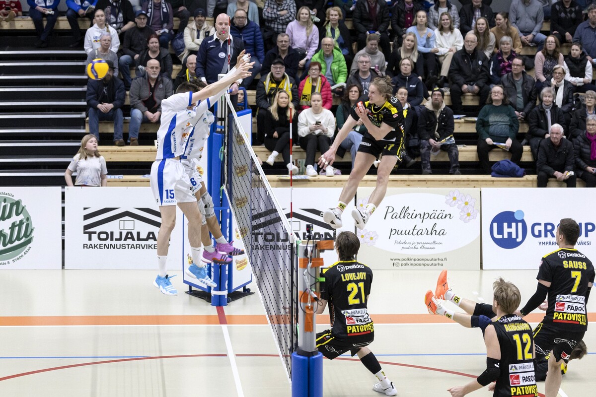 Kyyjärven KyKy-Betset otti seurahistorian ensimmäisen Mestaruusliigan pudotuspelivoiton ja kavensi puolivälierävoitot 1-2:een Akaa-Volleyta vastaan. Tappio oli Akaan ensimmäinen kotikentällä tällä kaudella. Akaa-Volley vs KyKy-Betset 2-3 (23-25, 25-21, 25-21, 18-25, 17-19) Akaa Areenan lehtereiltä oli aistittavissa äänetön pettymys, kun tuomari vihelsi kolmannen Akaa-Volleyn ja KyKy-Betsetin puolivälieräkohtaamisen päättyneeksi. Vieraat venyttivät ottelusarjan neljänteen kohtaamiseen lukemin 2-3. Ainoa yllätys jos sitä haluaa sellaisena pitää - ottelun avauskuusikoissa oli Joel Anderssonin ilmaantuminen KyKy-Betsetin yleispelaajaksi. Liberona lähes koko kauden esiintynyt ruotsalainen nähtiin laidalla jo runkosarjan lopulla, joten tämä valmentaja Atars Guntisin siirto oli ennakoitavissa. KyKy-Betset lähti otteluun ennakkoluulottomasti. Jansonsin ässäsyötön ja muutaman hyvän torjunnan jälkeen tulostaulu näytti lukemia 1-5. Akaan Olli Kunnari katsoi parhaaksi ottaa aikalisän. Hieman kotijoukkueen otteet terävöityivät lyhyen tauoin jälkeen, mutta erä vietiin loppuun asti vieraiden vedossa. Akaa-Volleyn tappiota selittävät ainakin kuusi syöttövirhettä ja toisaalta kyyjärveläisten onnistunut vastaanottopeli (61%), joka mahdollisti myös melko korkean hyökkäysten onnistumisprosentin (60). Toinen erä alkoi kuten ensimmäinenkin. Osat vain vaihtuivat. Kotijoukkueen johtaessa 5-1 oli Guntis Atarsin vuoro turvautua aikalisään. Kuten KyKy-Betset edellisessä erässä, Akaa-Volley ei enää luopunut hankkimastaan johtoasemasta. Pariin otteeseen päätuomari Pasi Hakkarainen joutui puuttumaan peliin muutoinkin kuin viheltämällä. Kertaalleen molempia joukkueita kehoitettiin siistimään toimintaa verkolla päättyneiden pallojen jälkeen. Lisäksi Hakkarainen kaivoi taskustaan myös keltaisen kortin, kun Guntis sai viivytysvaoituksen pelaajavaihdon yhteydessä. Nyt Akaa-Volleyn syöttöpeli palautui normaaliksi (3 ässää, neljä virhettä) ja KyKy-Betsetin vastaanotto oli vaikeuksissa (32%). Erän tehokkain oli Akaan hakkuri Matej Smidl yhdeksällä pisteellään. Pitkältä erätauolta tultiin melko erikoisessa tilanteessa. Akaa-Volleyn sarakkeeseen oli edellisen erän viivytysvaroitustilanteessa eksynyt yksi ylimääräinen piste. Neuvottelujen jälkeen taululle ilmaantuivat pisteet 24-18. KyKy-Betset taisteli hienosti itselleen kolme lisäpistettä ja kaunisteli toisen erän lopputilanteen lukemiin 25-21. Pidettiin lyhyt erätauko ja päästiin kolmannen kimppuun. Illan teeman mukaisesti nyt oli KyKy-Betsetin vuoro aloittaa vahvasti. Nyt mentiin lukemiin 1-6 ennen kuin kotijoukkue pääsi vauhtiin. Herääminen olikin sitten sitä pirteämpi ja tilanne tasoittui 6-6:een. Seuraava merkittävä tapahtuma nähtiin lukemissa 8-11, kun Kunnari vaihtoi Panu Pitkäsen tilalle Antti Taposen. Nuori keskipelaaja teki joukkueelleen heti pisteen näyttävällä torjunnalla. Sitkeästi vieraat kuitenkin pitivät hankkimansa johtoaseman, kunnes Smidln ässä ja Passari Ilja Ivanovin hyökkäys toivat Akaan tasoihin 14-14. Ensimmäisen kerran kotijoukkue nousi johtoon tilanteessa 17-16. Loppuerän se sitten veikin pistein 8-5. Tilastoista löytyy yksi mielenkiintoinen merkintä: KyKy:n hakkuri Renars-Pauls Jansonsin saldo tässä erässä oli vaatimaton 2/-2. Neljäs erä alkoi tasaisemmissa merkeissä kuin edelliset. Vieraat hankkiutuivat kuitenkin lähinnä Akaa-Volleyn virheiden avulla johtoasemaan 12-18. Tuossa vaiheessa Akaa vaihtoi passaria. Ivanov tuli vaihtoon ja Lasse Jäntti pääsi ensimmäistä kertaa tässä puolivälieräsarjassa rakentamaan joukkueensa hyökkäyspeliä. KyKy-Betset onnistui tässä erässä usein hyödyntämään keskihyökkäystä. Etenkin Atro Berg oli verkolla elementissään, hyökkäysprosentti tasan sata ja lisäksi yksi torjuntapiste. Kaiken kaikkiaankin kyyjärveläisten hyökkäyspeli toimi hienosti (65%). Mestaruusliiga on kuluneella kaudella ollut erittäin tasainen. Ei siis mikään ihme, että tämäkin ottelu venyi viisieräiseksi. KyKy-Betset aloitti ratkaisuerän tehokkaasti ja Kunnari turvautui aikalisään jo lukemissa 1-4. Guntisin valmennettavat jatkoivat kuitenkin vahvasti ja Akaan toinen aikalisä nähtiin, kun taululla olivat numerot 9-12. Tauko toi kotijoukkueen jälleen taisteluun mukaan ja KyKy:n aikalisä tuli heti perään tilanteessa 12-12. Loppuratkaisussa tuli hiki varmasti katsomonkin puolella. Jatkopalloille venynyt erä päättyi lopulta Jansonsin kahteen perättäiseen ässään. Atro Berg, KyKy-Betset: - Lähellä oli uran tähän mennessä paras peli. Pari torjuntaa olisi voinut ottaa. Ei tehty mitään eri tavalla, mutta tänään keskeltä alkoi sujua. Ehkä pakon edestä alkoi napsumaan. Joel Andersson pelaaminen yleispelaajana helpottaa, kun Aivars ei pystynyt täysillä pelaamaan. Yhdessä puhuttiin joukkueen kanssa, että aletaan hommia tekemään. Vastaanottoa lähdetään vielä parantamaan ja torjuntaa pitää miettiä, että saadaan enemmän kaappeja. Sebastian Pozo Hernandez, Akaa-Volley: - Ikävää hävitä. Ei oltu huolellisia kentällä. Kaikkialla olisi saanut parantaa. Kykyn peli yllätti. Guntis Atars, KyKy-Betset: - Erinomainen fiilis ja pitkästä aikaa vastaanotto toimi. Joel (Laakso) pyöritti peliä hienosti. Kevätkauden parasta peliä. Koko ajan oli fiilis, että pojat haluavat voittaa. Vastaanotto ei ollut erinomaista, mutta tarpeeksi hyvää, että saatiin keskareita mukaan. Olen ylpeä pojista. Kun peli kulkee, se kulkee. Lentopallo on fiilis peliä. Olli Kunnari, Akaa-Volley: - Tiukkaa vääntöä. Kaverin keskipeliä ei saatu kuriin. Syöttö ei ollut riittävän laadukasta. Tyytyväinen olen hyökkäyspeliin, tappo päälle 50%. Muilla osa-alueilla pitää parantaa. KyKy-Betsethän nosti peliään, ei kahta sanaa. Ei kuitenkaan katastrofi peli ollut, mutta tottakai harmittaa, kun 2 pisteen erolla hävitään viides erä. Akaa-Volleyn ensimmäinen Mestaruuslii