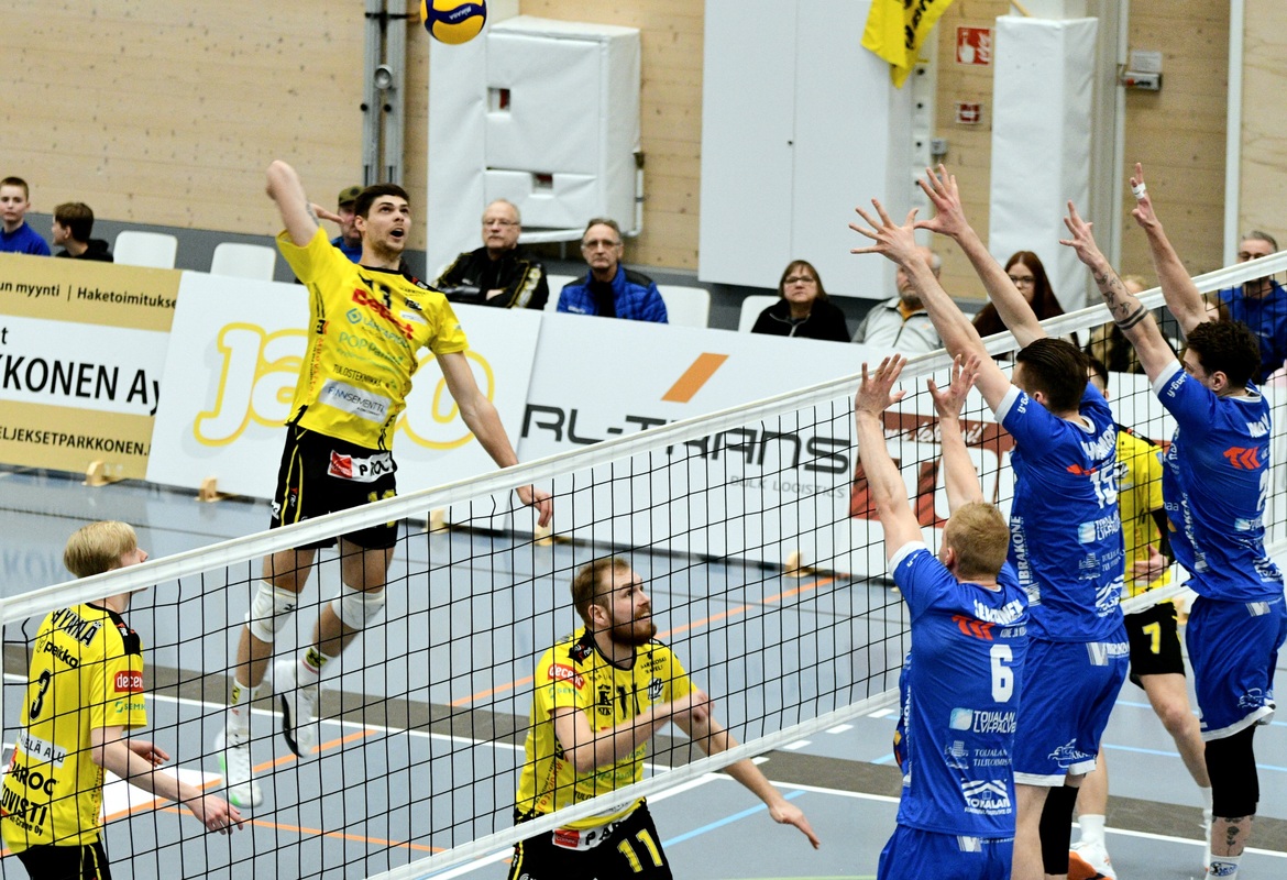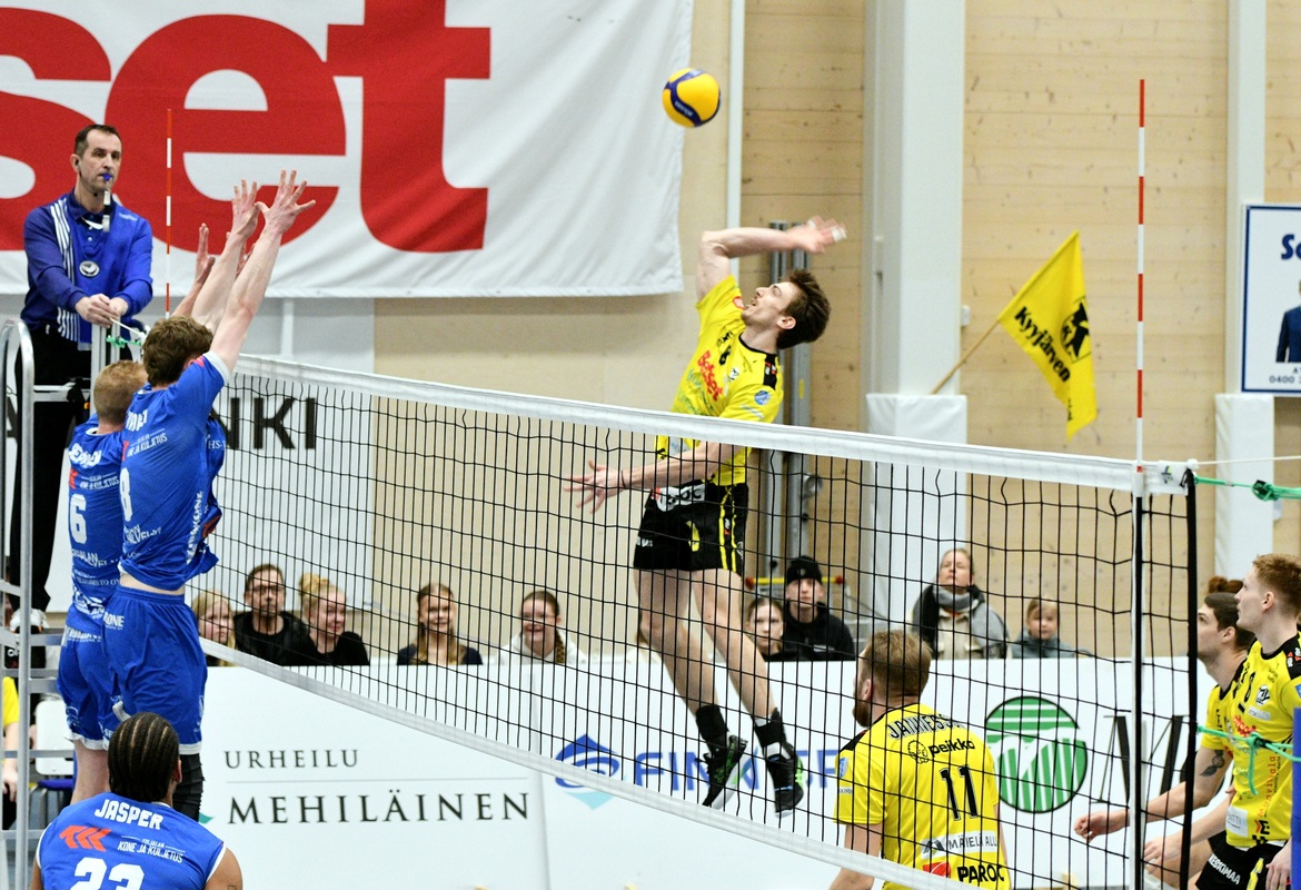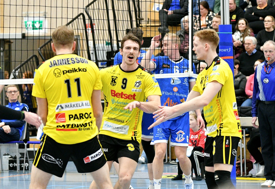 KyKy-Betset vs Akaa-Volley 0-3 (16-25, 18-25, 17-25) Akaa-Volley voitti suoraan kolmessa erässä (16-25, 18-25, 17-25) KyKy-Betsetin Alajärvellä pelatussa ottelussa ja johtaa ottelusarjaa nyt voitoin 2-0. Ottelu alkoi poikkeuksellisesti pienellä seremonialla urheiluseura Kyyjärven KyKyn täyttäessä 80 vuotta. Akaa-Volley muisti päivänsankaria kukkasilla ja päätteeksi kuultiin Maamme-laulu. Ensimmäisen erän kaksi ensimmäistä pistettä vei KyKy-Betset Markus Cielavssin syöttövuorolla, mutta Akaa otti pian piikkipaikan. Vaikka erä päättyi lukemiin 16-25, Kykyltä nähtiin välillä hyviäkin otteita. Akaan Jaylen Jasper oli vaarallinen syöttöruudussa. Akaa jatkoi vahvoja esityksiään toisessa erässä ja karkasi 8-12-johtoon. Kyvyllä ei ollut riittävästi kapasiteettia päättää hyökkäyksiä riittävillä tehoilla. Erä päättyi Ilja Ivanovin ässäsyöttöön. Pitkän tauon jälkeen kentälle asteli asteen taistelutahtoisempi KyKy, mutta Akaan paremmuus kaikilla osa-alueilla ei antanut Kyvylle mahdollisuutta yllätykseen. Samuel Jurik, KyKy-Betset: "Akaa oli hyvällä tasolla, ja tuon tasoeron pystyi tänään näkemään. Akaa syötti hyvin, ja meillä oli vaikeuksia omassa vastaanottopelaamisessamme." KyKy-Betsetin päävalmentaja Aapo Rantanen: "Voimme parantaa jokaisella osa-alueella. Prässin alla kun joudumme pelaamaan, niin pieniä lipsahduksia tulee herkemmin." Akaa-Volleyn päävalmentaja Olli Kunnari: "Tänään meidän syöttö pelasi tosi hyvin. Edellinen peli osoitti, että KyKy puolustaa parhaimmillaan hyvin ja sitä koetettiin muistaa ja olla kärsivällisiä ja luottaa omaan torjuntapuolustukseen. Tänään pysyi maltti meidän omassa tekemisessä." Akaa-Volley johtaa ottelusarjaa nyt voitoin 2-0. Ottelusarja jatkuu heti huomenna Alajärvellä. 3. Puolivälierä Ottelu KyKy-Betset vs Akaa-Volley Ke 26.3. Klo: 18:30 Alajärven Monitoimihallilla. Ottelusarja pelataan ns. paras seitsemästä systeemillä, eli neljästä voitosta. Otteluparin voittaja jatkaa Välieriin ja häviäjä lähtee kesälomille. Ottelun MVP:t: Samuel Jurik, KyKy-Betset, Spencer Olivier, Akaa-Volley. Ottelun tilastot: Competition Site by Data Project Ruutu+: Huippuhetket: Kyky-Betset - Akaa-Volley 25.3.2025 (2. puolivälierä) | Ruutu Mestaruusliigan Ottelut, sarjataulukko, tilastot: Competition Site by Data Project KyKy-Betsetin Ottelut Ja Sarjataulukko Kaudella 2024-2025: https://kyky-betset.sporttisaitti.com/ottelut-sarjataulukko/ |