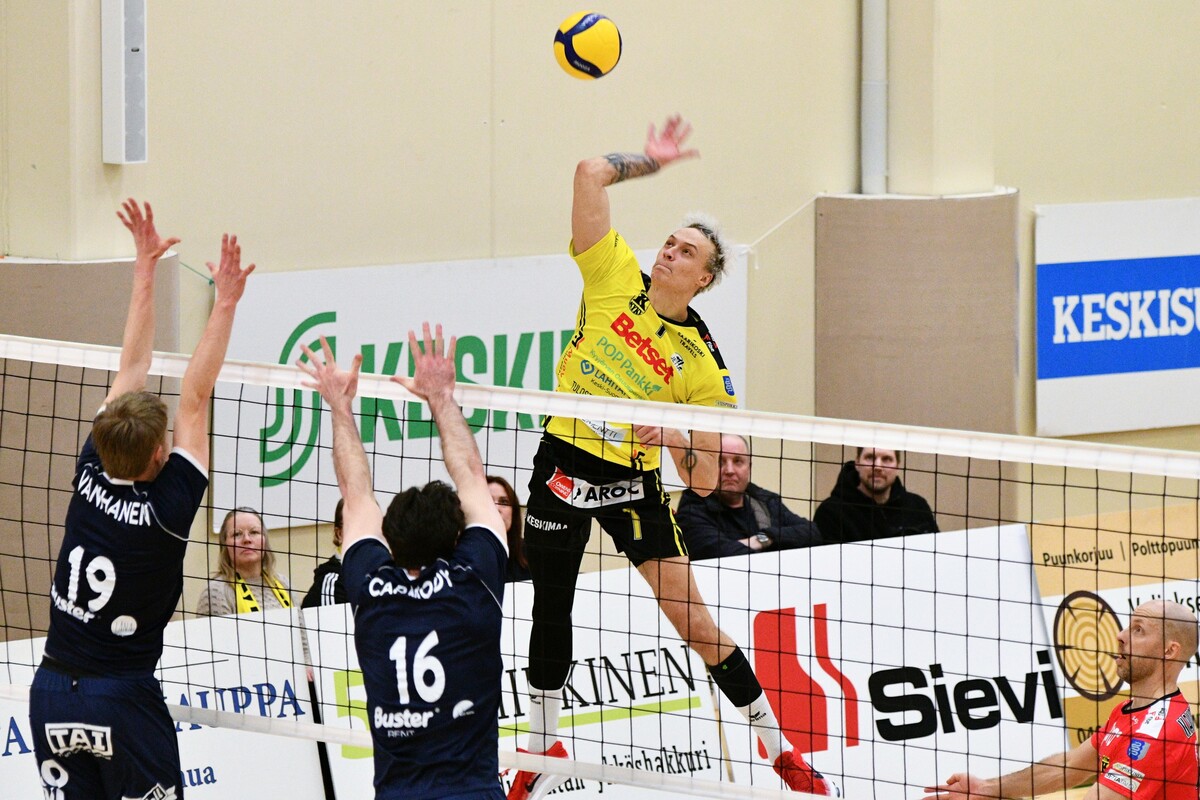 KyKy-Betset vs TUTO Volley 3-1 (25-20, 16-25, 25-15, 25-21) KyKy-Betset nappasi tärkeän kolmen pisteen voiton omalla kotikentällään kaatamalla TUTO Volleyn erin 3–1 (25–20, 16–25, 25–15, 25–21). Ottelu aaltoili vahvasti joukkueiden momentumien mukaan, ja ratkaiseva käänne nähtiin kolmannen erän alussa, kun TUTO Volleyn kokenut passari Mikko Esko joutui jättämään pelin kesken loukkaantumisen vuoksi. Esko on ollut TUTO Volleylle merkittävä vahvistus kesken kauden, ja hänen poistumisensa näkyi välittömästi joukkueen otteissa. Myös KyKy-Betsetin yleispelaaja Niko-Matias Puhakka puuttui riveistä käsivamman vuoksi. Hän oli loukannut kätensä edellisessä ottelussa Kokkolan Tiikereitä vastaan. TUTO Volleyn päävalmentaja Mika Rantanen kuvaili Eskon loukkaantumista ottelun kulminaatiopisteeksi. – Ainakin hetken aikaa haettiin itseämme ja päästiin pikkuhiljaa takaisin, mutta ei päästy riittävän pitkälle. Kyllä se kulminaatiopiste oli tänään, Rantanen totesi. TUTO Volleyn parhaana palkittu Roope Keskinen (12/+9) näki saman vaikutuksen kentällä. – Toiseen erään tsempattiin hyvin ja voitettiin selkeästi. Sitten Mikko lähti pois ja siinä meni muilla pää vähän sekaisin, hän kuvaili. KyKy-Betsetiltä parhaana palkittiin Yaroslav Horobets (17/+5), joka iloitsi tärkeistä pisteistä. – Tarvitsimme todella kolme pistettä. Aloitimme hyvin, toinen erä oli heikko, mutta sen jälkeen pelasimme taas omalla tasollamme, Horobets summasi. KyKy-Betsetin päävalmentaja Aapo Rantanen korosti kotisalissa voittamisen merkitystä. – Kolme pistettä oli isoin anti tästä pelistä. Vastaanotto toimi ja mahdollisti hyvän pelaamisen. Puolustuspelaamiseen meidän pitää kuitenkin saada lisää laatua, Rantanen arvioi. TUTO Volleyn valmennus antoi kehuja vastaanottopelaamisesta, mutta hyökkäysten laadussa jäi parannettavaa etenkin heikommista vastaanotoista. – Niissä palloissa me selkeästi hävittiin tänään, Mika Rantanen sanoi. Ottelun MVP:t: Yaroslav Horobets, KyKy-Betset, Roope Keskinen, TUTO Volley. PROLibero: Aatu Kulmala, TUTO Volley. Ottelun villeimmät pelaajat: Aivars Petrusevics, KyKy-Betset, Kalle Kattelus, TUTO Volley. Ottelun tilastot: Competition Site by Data Project Ruutu+: Huippuhetket: Kyky-Betset - TUTO Volley 27.1.2026 | Ruutu Lehdistötilaisuus: LEHDISTÖTILAISUUS: KyKy-Betset - TUTO Volley 27.1. | Ruutu Mestaruusliigan Ottelut, sarjataulukko, tilastot: Competition Site by Data Project KyKy-Betsetin Ottelut Ja Sarjataulukko Kaudella 2025-2026: https://kyky-betset.sporttisaitti.com/ottelut-sarjataulukko/ |