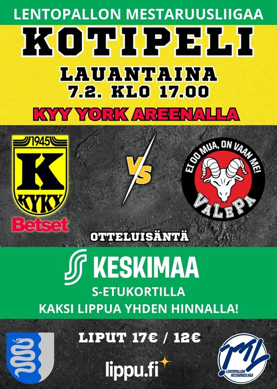 Lauantaina 7.2. Klo: 17:00 KyKy-Betset vs VaLePa Kyy York Areenalla. Etuhintaiset liput ovat myynnissä ovella. Ei ennakkomyyntiä. Otteluisäntä: Osuuskauppa Keskimaa |