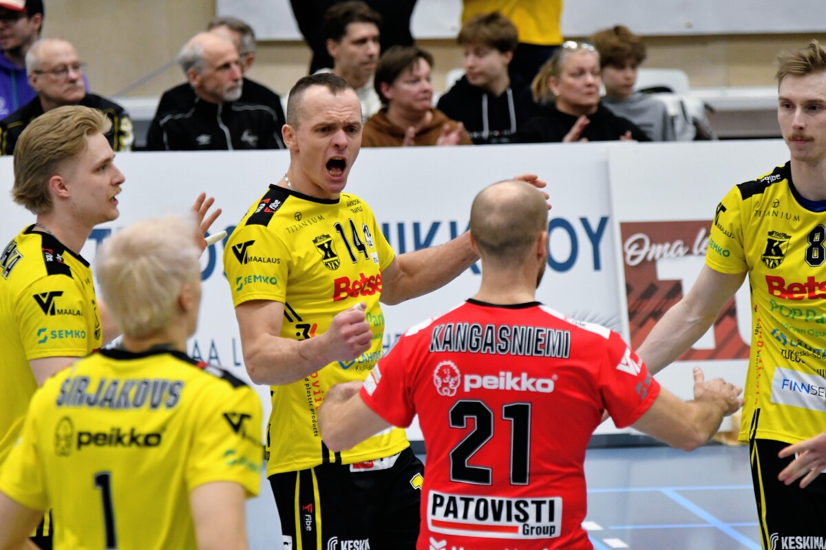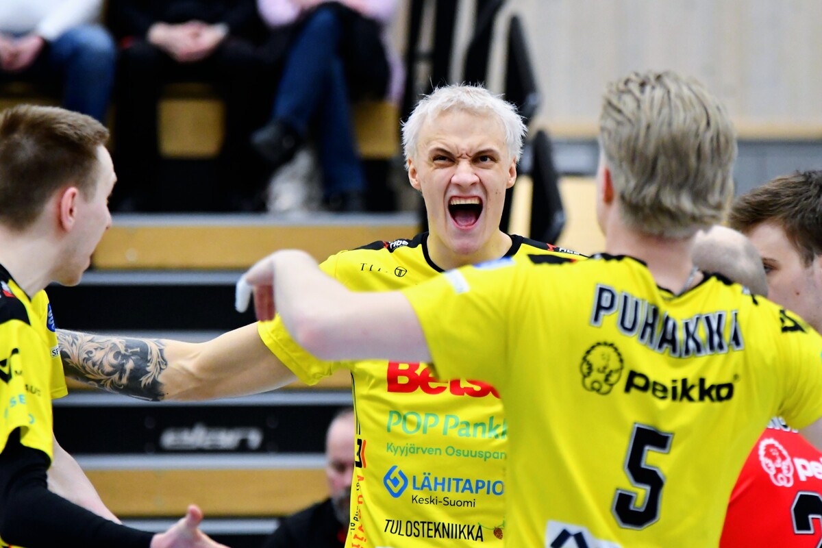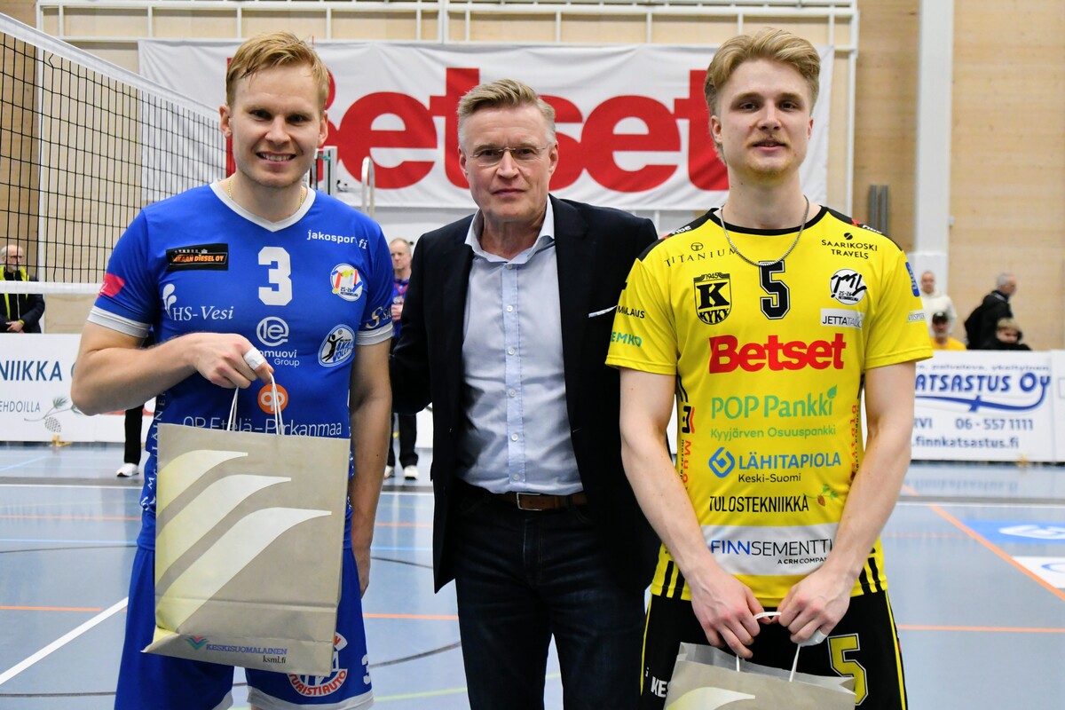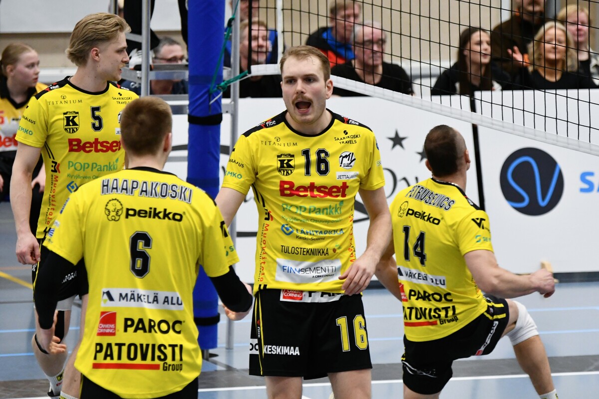 KyKy-Betset vs Akaa-Volley 2-3 (20-25, 20,25, 25-21, 25-21, 11-15) Akaa-Volley otti toisen voittonsa puolivälieräsarjassa KyKy-Betsetistä, kun Alajärvellä pelattu ottelu venyi viiden erän taistoksi (20-25, 20-25, 25-21, 25-21,11-15). Vieraat veivät ratkaisevan erän numeroin 11–15 ja ovat nyt voiton päässä jatkopaikasta. Akaa-Volley avasi ottelun vahvalla otteella ja karkasi jo seitsemän pisteen johtoon. KyKy-Betset kykeni kaventamaan, mutta ei ohittamaan, ja vieraat veivät avauserän lukemin 20–25. Toisessa erässä kotijoukkue sai hetkeksi otteen: ensimmäinen johtoasema nähtiin Akaan Antti Ropposen syöttövirheen jälkeen tilanteessa 3–3, ja KyKy pysyi edellä aina lukemiin 12–11. Tasatilanteeseen päädyttiin pitkän pallorallin päätteeksi, kun Ropponen pudotti pallon Kyvyn kenttään. Sen jälkeen Akaa ei johdostaan luopunut ja vei myös toisen erän. Kolmannessa erässä KyKy-Betset piristyi selvästi. Pisteitä tehtiin vuorotahtiin, Ropponen jatkoi vahvaa virettään ja KyKyltä esiin nousi Petteri Härkönen. Erä päättyi kotijoukkueen torjuntapisteeseen ja KyKyn kavennukseen. Neljäs erä jatkui tasaisena ja virheitä nähtiin molemmissa päissä. Pientä huolta kotijoukkueelle aiheutti Andris Sirjakovsin nilkan muljahdus hyökkäyksen päätteeksi, mutta hän jatkoi peliä. Erä päättyi Akaan verkkovirheeseen ja ottelu venyi viidenteen erään. Akaa-Volley tuli ratkaisuun valmiimpana ja otti kolmen pisteen karkumatkan. KyKylle kasaantui omia virheitä, mutta yleispelaaja Niko-Matias Puhakka piti joukkuetta mukana loppuun asti. Ottelu päättyi, tuttuun tapaan, Ropposen rajalyöntiin – ase, joka koitui KyKyn kohtaloksi myös joukkueiden ensimmäisessä kohtaamisessa. Akaan parhaana palkittiin hakkuri Antti Ropponen tehoin 27/+13. KyKyn ykkönen oli Niko-Matias Puhakka (20/+15) Antti Ropponen, Akaa-Volley: – Oli yleisöön menevä matsi. Kyyjärvi paransi pitkän erätauon jälkeen ja kolmanteen erään todella loistavasti. Torjuntalyöntejä oli liikaa, Petrusevic ja Puhakka olivat niissä hyvin hereillä. Silti totta kai iloisia ollaan voitosta. Vastaanotto 80 prosenttia on todella kova. Tää on pudotuspeliä parhaimmillaan. Tykkään kyllä pelata. Niko-Matias Puhakka, KyKy-Betset: – Täristiin aika lailla kahdeksan ensimmäistä palloa, eikä alkuun tullut onnistumisia. Sitten oltiin pahasti perässä. Hyvä, että sain viidenteen erään onnistumisia, mutta ei sillä ole merkitystä, jos ollaan viisi pinnaa perässä. Aapo Rantanen, KyKy-Betset: – Eka erän alku ei ollut hyvä, ja Akaa pelasi siinä vahvasti. Ei me missään tappioerissäkään pelattu huonosti, Akaa vain otti pisteet. Kuusi hyökkäysvirhettä viiteen erään on hyvä lukema, mutta Akaa puolusti kovia lyöntejä paremmin ja sai jatkopalloista pallot alas – siinä oli iso ero. Jani Niskakangas, Akaa-Volley: – Vastaanotto oli kaikissa erissä noin 80 prosenttia, mikä on huikea luku. Sarajärvi ja Goto kantoivat suurta vastuuta, Mäkinen säesti hyvin. Olisimme voineet olla tehokkaampia hyökkäyksessä. Kahden erän jälkeen näytti meille helpolta, mutta KyKy-Betset pelaa todella hyvin tällä hetkellä. Keskiviikkona tarvitaan vähintään sama lataus. Ottelun MVP:t: Niko-Matias Puhakka, KyKy-Betset, Antti Ropponen, Akaa-Volley. Ottelun paras libero: Kandai Goto, Akaa-Volley. Ottelun tilastot: Competition Site by Data Project Ruutu+: Huippuhetket: Kyky-Betset - Akaa-Volley 30.3.2026 (2. puolivälierä) | Ruutu Lehdistötilaisuus: Lehdistötilaisuus: KyKy-Betset - Akaa-Volley 30.3. | Ruutu Mestaruusliigan Ottelut, sarjataulukko, tilastot: Competition Site by Data Project KyKy-Betsetin Ottelut Ja Sarjataulukko Kaudella 2025-2026: https://kyky-betset.sporttisaitti.com/ottelut-sarjataulukko/ |