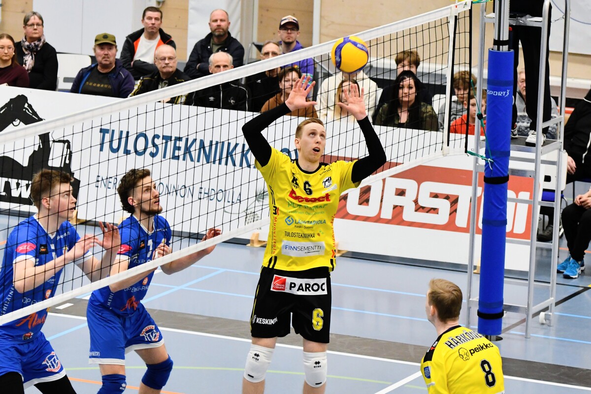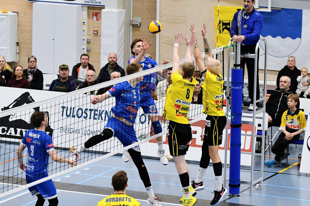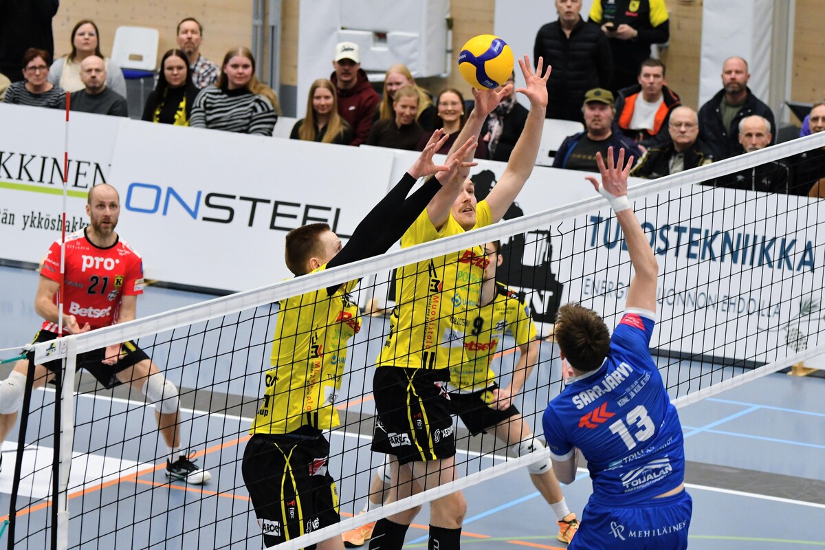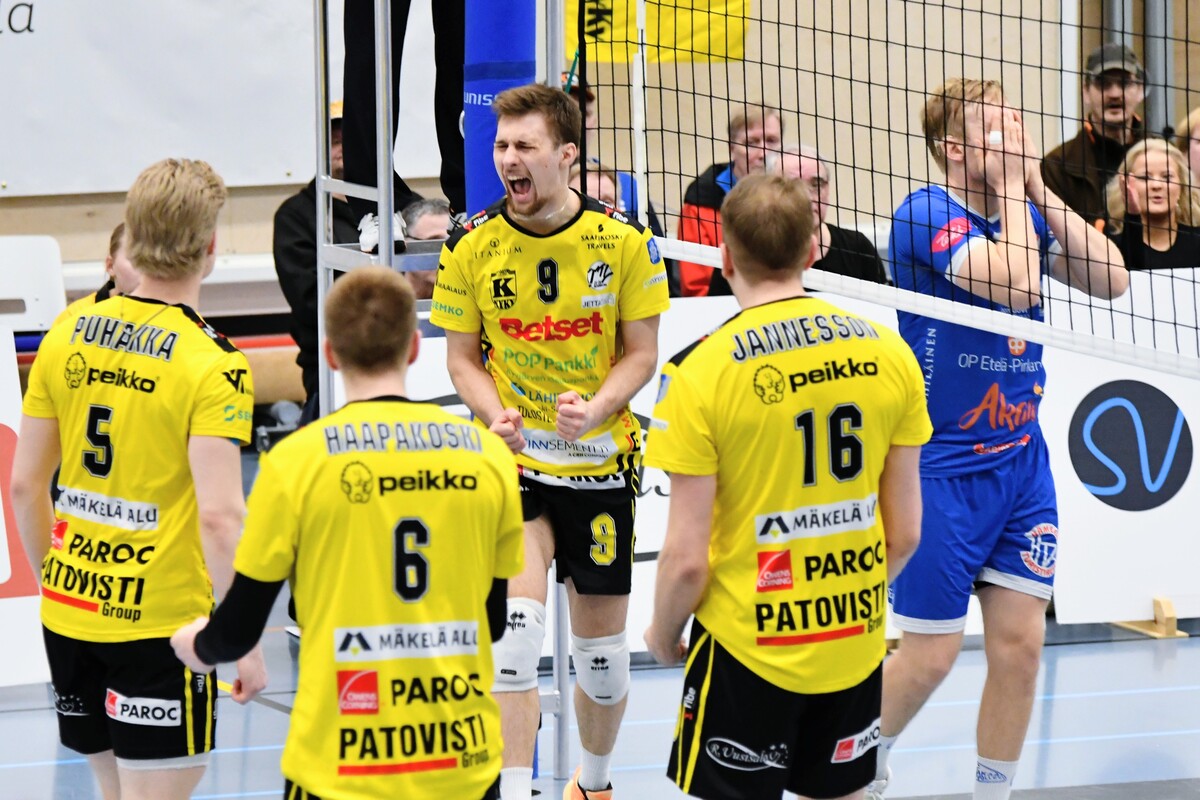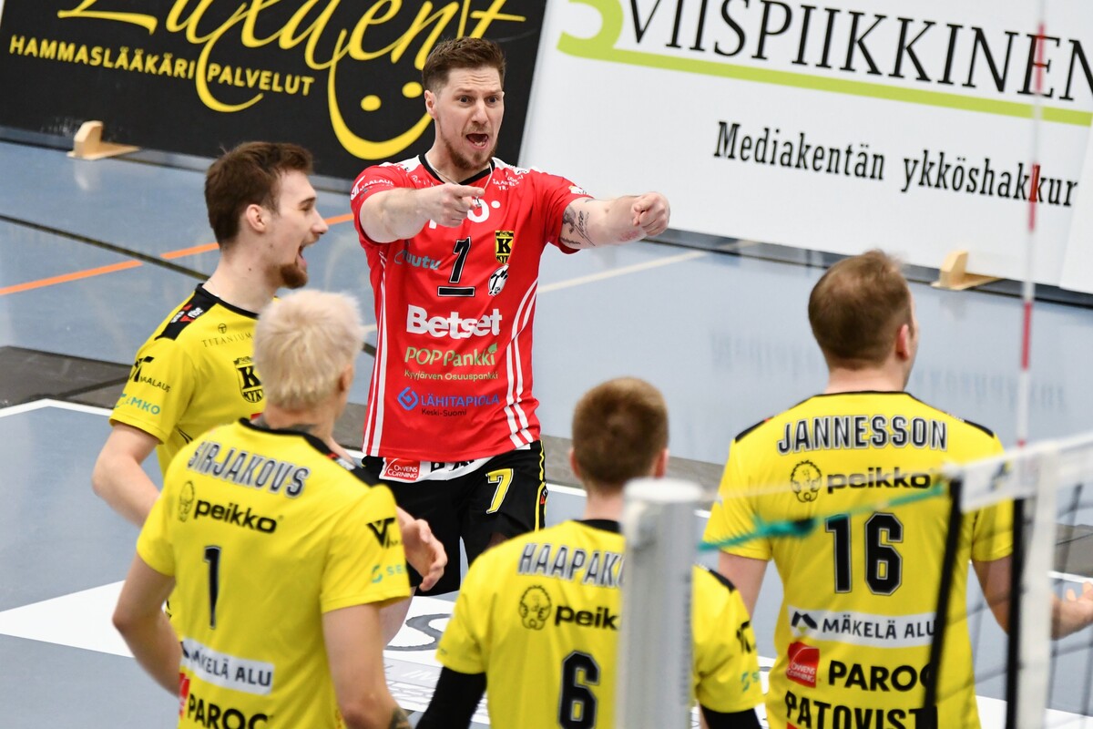 KyKy-Betset vs Akaa-Volley 2-3 (20-25, 20,25, 25-21, 25-21, 11-15) Akaa-Volley otti toisen voittonsa puolivälieräsarjassa KyKy-Betsetistä, kun Alajärvellä pelattu ottelu venyi viiden erän taistoksi (20-25, 20-25, 25-21, 25-21,11-15). Vieraat veivät ratkaisevan erän numeroin 11–15 ja ovat nyt voiton päässä jatkopaikasta. Akaa-Volley avasi ottelun vahvalla otteella ja karkasi jo seitsemän pisteen johtoon. KyKy-Betset kykeni kaventamaan, mutta ei ohittamaan, ja vieraat veivät avauserän lukemin 20–25. Toisessa erässä kotijoukkue sai hetkeksi otteen: ensimmäinen johtoasema nähtiin Akaan Antti Ropposen syöttövirheen jälkeen tilanteessa 3–3, ja KyKy pysyi edellä aina lukemiin 12–11. Tasatilanteeseen päädyttiin pitkän pallorallin päätteeksi, kun Ropponen pudotti pallon Kyvyn kenttään. Sen jälkeen Akaa ei johdostaan luopunut ja vei myös toisen erän. Kolmannessa erässä KyKy-Betset piristyi selvästi. Pisteitä tehtiin vuorotahtiin, Ropponen jatkoi vahvaa virettään ja KyKyltä esiin nousi Petteri Härkönen. Erä päättyi kotijoukkueen torjuntapisteeseen ja KyKyn kavennukseen. Neljäs erä jatkui tasaisena ja virheitä nähtiin molemmissa päissä. Pientä huolta kotijoukkueelle aiheutti Andris Sirjakovsin nilkan muljahdus hyökkäyksen päätteeksi, mutta hän jatkoi peliä. Erä päättyi Akaan verkkovirheeseen ja ottelu venyi viidenteen erään. Akaa-Volley tuli ratkaisuun valmiimpana ja otti kolmen pisteen karkumatkan. KyKylle kasaantui omia virheitä, mutta yleispelaaja Niko-Matias Puhakka piti joukkuetta mukana loppuun asti. Ottelu päättyi, tuttuun tapaan, Ropposen rajalyöntiin – ase, joka koitui KyKyn kohtaloksi myös joukkueiden ensimmäisessä kohtaamisessa. Akaan parhaana palkittiin hakkuri Antti Ropponen tehoin 27/+13. KyKyn ykkönen oli Niko-Matias Puhakka (20/+15) Antti Ropponen, Akaa-Volley: – Oli yleisöön menevä matsi. Kyyjärvi paransi pitkän erätauon jälkeen ja kolmanteen erään todella loistavasti. Torjuntalyöntejä oli liikaa, Petrusevic ja Puhakka olivat niissä hyvin hereillä. Silti totta kai iloisia ollaan voitosta. Vastaanotto 80 prosenttia on todella kova. Tää on pudotuspeliä parhaimmillaan. Tykkään kyllä pelata. Niko-Matias Puhakka, KyKy-Betset: – Täristiin aika lailla kahdeksan ensimmäistä palloa, eikä alkuun tullut onnistumisia. Sitten oltiin pahasti perässä. Hyvä, että sain viidenteen erään onnistumisia, mutta ei sillä ole merkitystä, jos ollaan viisi pinnaa perässä. Aapo Rantanen, KyKy-Betset: – Eka erän alku ei ollut hyvä, ja Akaa pelasi siinä vahvasti. Ei me missään tappioerissäkään pelattu huonosti, Akaa vain otti pisteet. Kuusi hyökkäysvirhettä viiteen erään on hyvä lukema, mutta Akaa puolusti kovia lyöntejä paremmin ja sai jatkopalloista pallot alas – siinä oli iso ero. Jani Niskakangas, Akaa-Volley: – Vastaanotto oli kaikissa erissä noin 80 prosenttia, mikä on huikea luku. Sarajärvi ja Goto kantoivat suurta vastuuta, Mäkinen säesti hyvin. Olisimme voineet olla tehokkaampia hyökkäyksessä. Kahden erän jälkeen näytti meille helpolta, mutta KyKy-Betset pelaa todella hyvin tällä hetkellä. Keskiviikkona tarvitaan vähintään sama lataus. Ottelun MVP:t: Niko-Matias Puhakka, KyKy-Betset, Antti Ropponen, Akaa-Volley. Ottelun paras libero: Kandai Goto, Akaa-Volley. Ottelun tilastot: Competition Site by Data Project Ruutu+: Huippuhetket: Kyky-Betset - Akaa-Volley 30.3.2026 (2. puolivälierä) | Ruutu Lehdistötilaisuus: Lehdistötilaisuus: KyKy-Betset - Akaa-Volley 30.3. | Ruutu Mestaruusliigan Ottelut, sarjataulukko, tilastot: Competition Site by Data Project KyKy-Betsetin Ottelut Ja Sarjataulukko Kaudella 2025-2026: https://kyky-betset.sporttisaitti.com/ottelut-sarjataulukko/ |