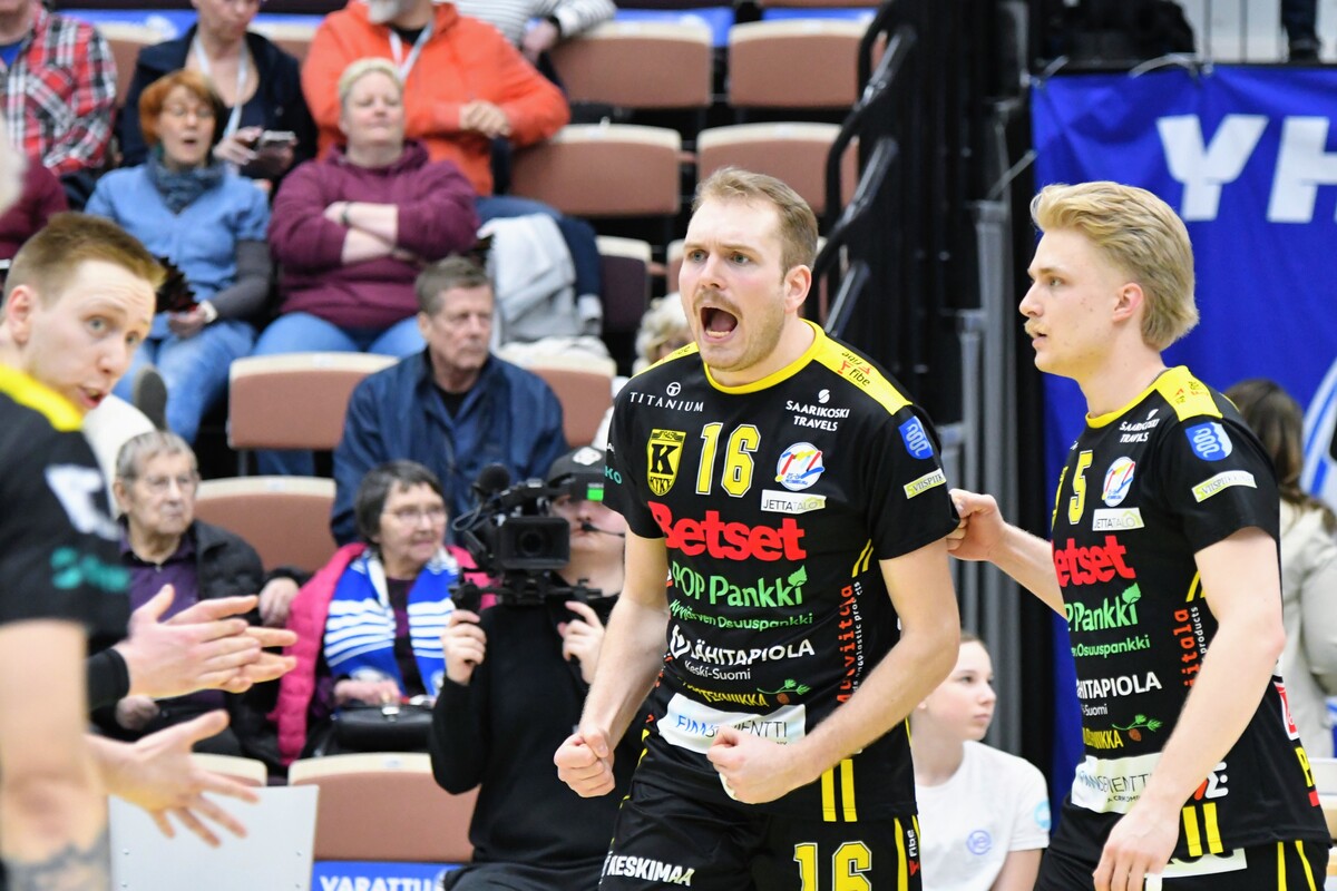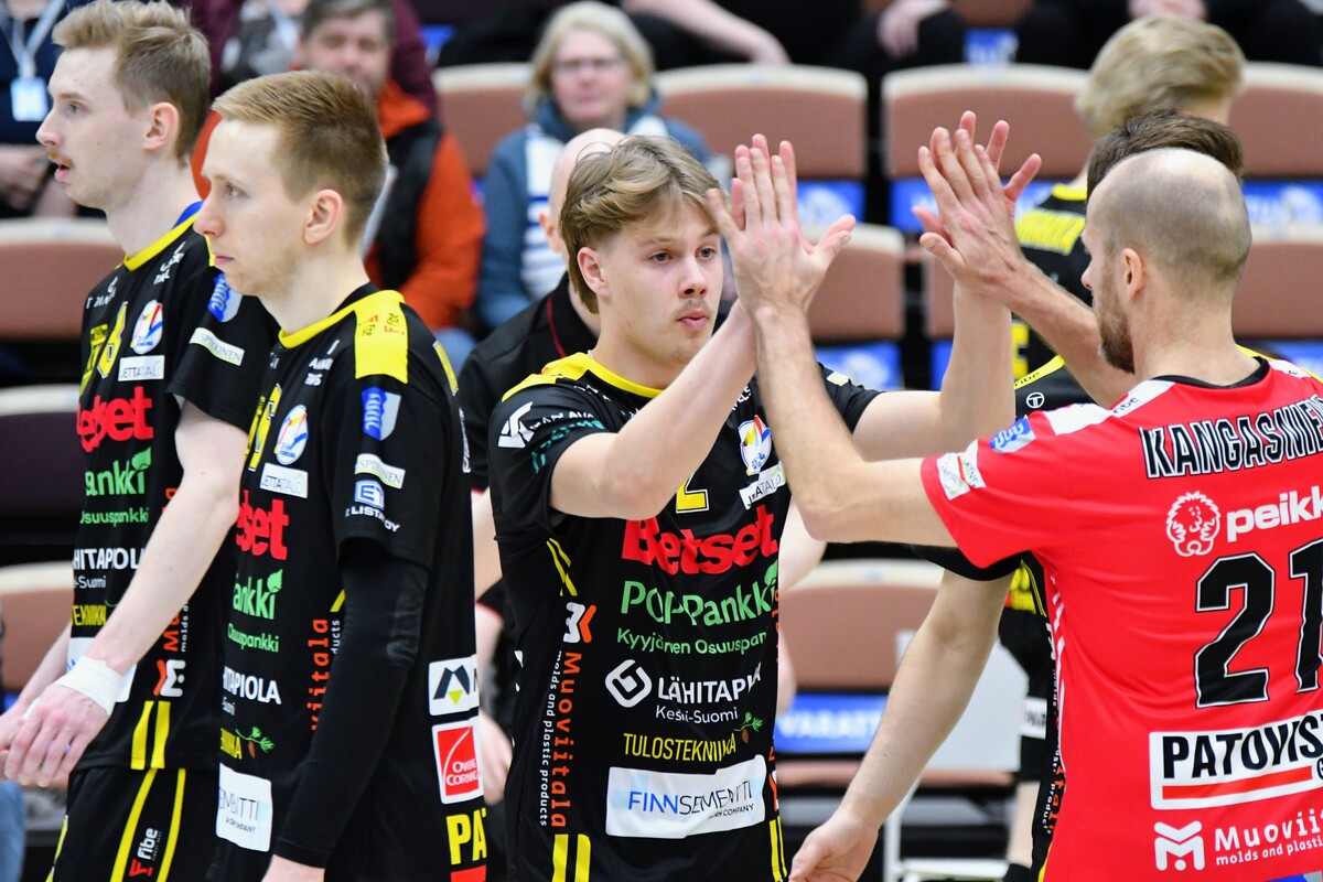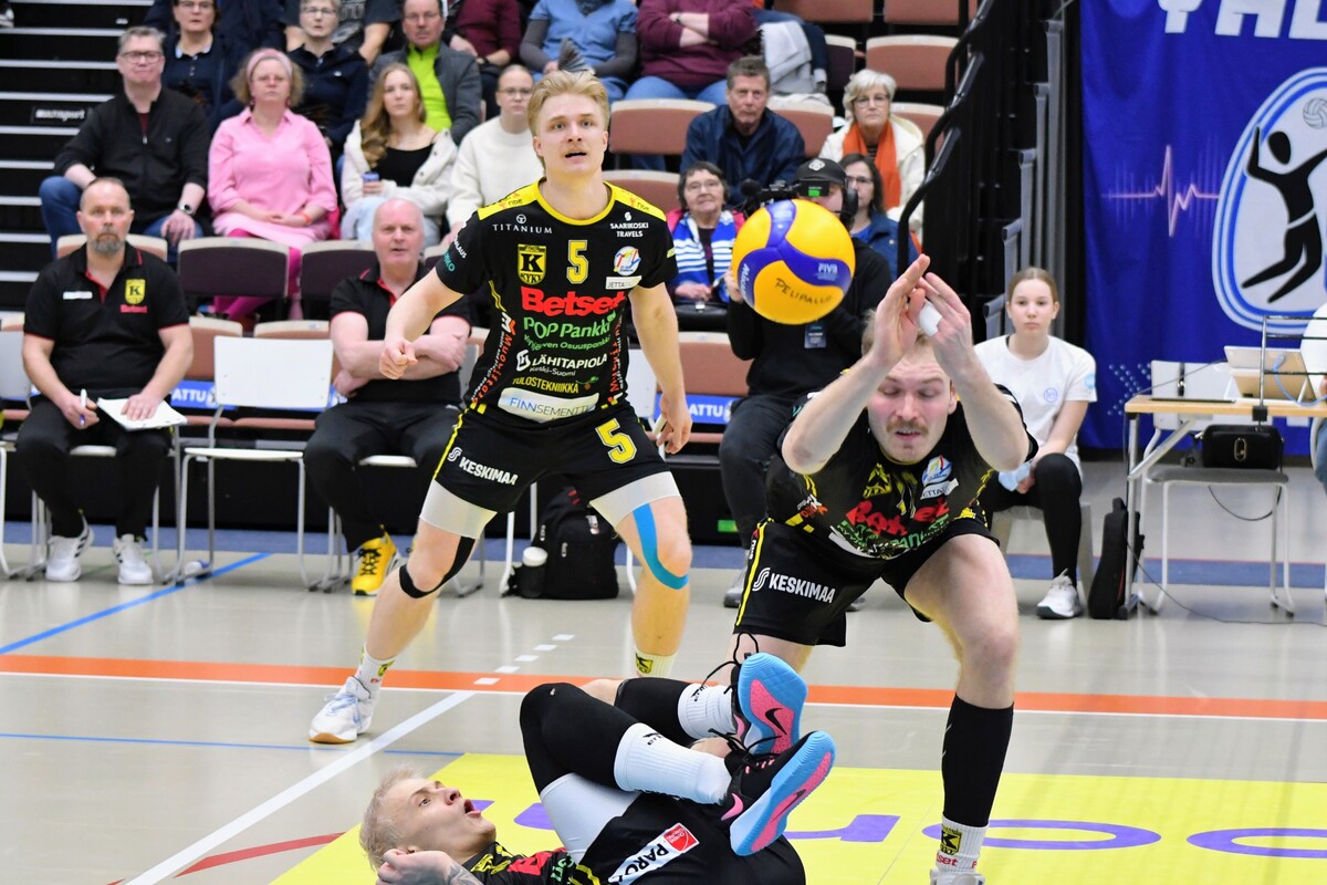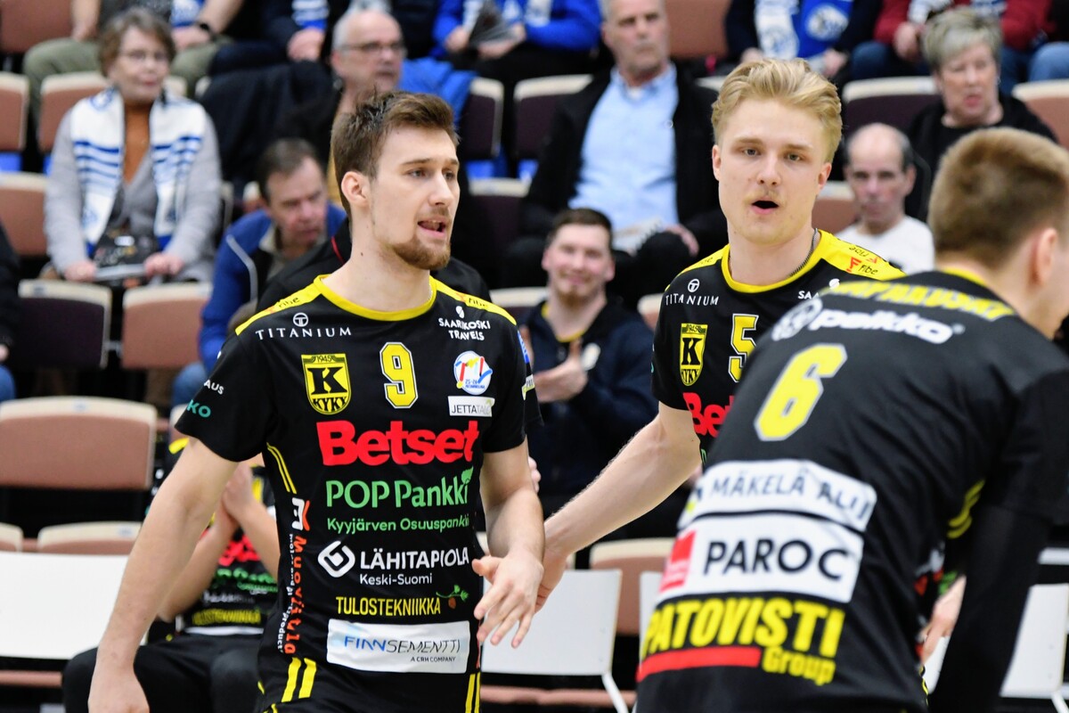 Akaa-Volley vs KyKy-Betset 3-1 (25-22, 21-25, 25-18, 25-9) Keskiviikon kolmas puolivälieräkamppailu päättyi akaalaisten 3-1 (25-22, 21-25, 25-18, 25-9) voittoon. Näin Akaa-Volley jatkaa välieriin ja KyKy-Betset saa aloittaa kesäloman. Ottelun avauskuusikoissa ei ollut yllätyksiä. KyKy tuli kehiin vakiokuusikolla. Oikeastaan ainoa kysymysmerkki oli toisen yleispelaajan kohdalla. Tällä kertaa Yaroslav Horobets ilmestyi kentälle ja Aivars Petrusevics jäi lämmittelemään vaihtonurkkaukseen. Akaa-Volleyn passarina aloitti Leevi Väänänen, Sakari Mäkinen sai laidalle kaverikseen Niklas Seppäsen ja keskipelaajista vaihtoon jäi Antti Taponen. Ykköserä alkoi tasaisesti. Tilanteessa 7-8 KyKyn David Jannesson tuli huoltoon kättään pidellen ja irvistäen. Keskipelaajan sormi oli mennyt sijoiltaan. Tilanteen jälkeen ottelun ote siirtyi hetkeksi Akaa-Volleylle. Mutta vain hetkeksi. Niklas Seppänen vaihtui Oskari Sarajärveen, kun kotijoukkue oli tappiolla 14-16. Loppuerä menikin sitten akaalaisten piikkiin 11-6. Jannesson pystyi onneksi peliä jatkamaan ja tuli takaisin tositoimiin erän lopulla. Toinen erä oli melkoista aaltoliikettä. Ensin KyKy-Betset otti selkeän johtoaseman 2-7. Sen jälkeen Antti Ropposen syöttövuorolla Akaa-Volley teki kuusi pistettä ja nousi tilanteeseen 8-7. Seuraavat pisteet kirjattiin jälleen KyKyn tilille 1-6 ja taululla siis lukemat 9-13. Loppuerä meni KyKy-Betsetin hallitessa pelitilanteita. Edes Akaa-Volleyn Jani Niskakankaan ottama tuplavaihto numeroissa 15-20 ei kääntänyt ottelun kulkua. Erästä voi lisäksi mainita Mäkisen saama keltaisen kortin. Akaalaisten näkemyksen mukaan KyKy-Betsetin torjuma pallo meni rajojen ulkopuolelle. Tuomaristo oli eri mieltä ja Mäkinen protestoi tilannetta hieman liian pitkään. Kahden erän jälkeen kyyjärveläisten syöttötilasto oli mairitteleva. Jokainen valmentaja olisi joukkueestaan ylpeä, kun ainoastaan viiden syöttövirheen oheen kirjataan seitsemän ässää! Kolmatta erää vietiin akaalaisvedossa koko matkan. Tällä kerralla KyKy-Betsetin valmentaja Aapo Rantanen herätteli joukkuettaan tuplavaihdolla. Mutta tulosta ei syntynyt. Erä päättyi Ropposen näyttävään rajalyöntiin kakkosnurkasta. Neljättä erää pelattiin niin sanotusti yhteen maaliin. Vain 18 minuutin mittainen erä päättyi akaalaisten murskavoittoon 25-9. Ottelun lopulla Sarajärvi huudatti yleisöä parilla näyttävällä ässäsyötöllä. Ottelu päättyi Horobetsin hyökkäysvirheeseen. Ottelun jälkeen Akaa-Volleyn Sakari Mäkinen kiitteli joukkueensa laajuutta ja vastustajaa parempaa rutiinia. - Näytti vähän siltä, että kaverilta alkoi takki tyhjentyä kahden erän jälkeen. Kolme tiukkaa peliä viiteen päivään suosii meitä. Laajalla rosterilla voidaan pelaajia vaihtaa tarpeen mukaan. Kyllä itsekin otan mielelläni vastaan nyt muutaman päivän huilin ennen välieriä. KyKy-Betsetin passari Niko Haapakoski myönsi ottelutahdin kovuuden. - Kaksi erää jaksettiin vääntää, mutta sen jälkeen alkoi huomata, että porukka väsyy. Kyllä Sirjakovsia alkoi kova kuorma jo selvästi hapottaa enkä saanut muistakaan hyökkääjistä enää tehoja irti. Ottelun MVP:t: Antti Ropponen, Akaa-Volley, Niko-Matias Puhakka, KyKy-Betset. Ottelun tilastot: Competition Site by Data Project Ruutu+: Huippuhetket: Akaa-Volley - Kyky-Betset 1.4.2026 (3. puolivälierä) | Ruutu Ruutu+: Kyky-Betsetin Niko Haapakoski studion haastattelussa | Ruutu Ruutu+: Mestaruusliigan Ottelut, sarjataulukko, tilastot: Competition Site by Data Project KyKy-Betsetin Ottelut Ja Sarjataulukko Kaudella 2025-2026: https://kyky-betset.sporttisaitti.com/ottelut-sarjataulukko/ |