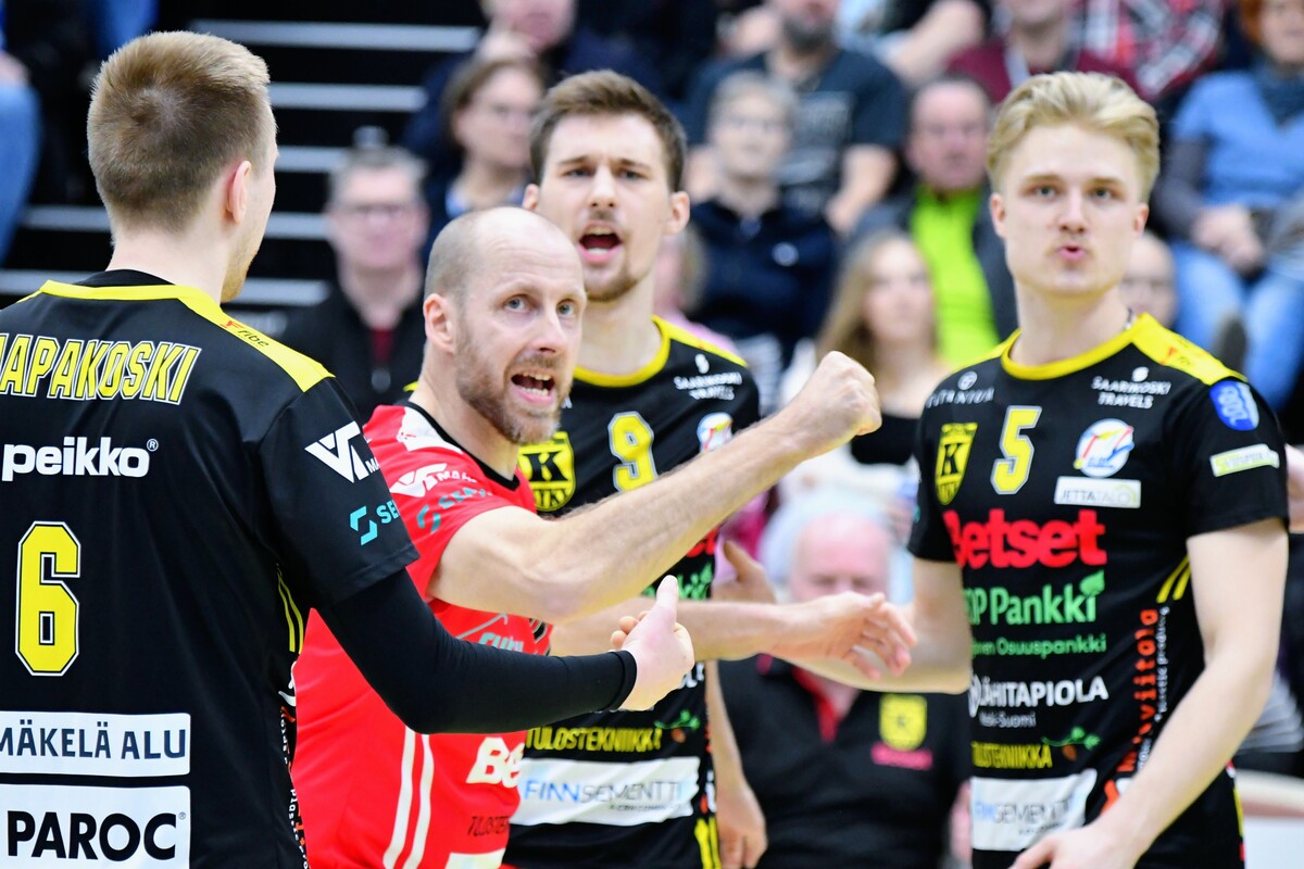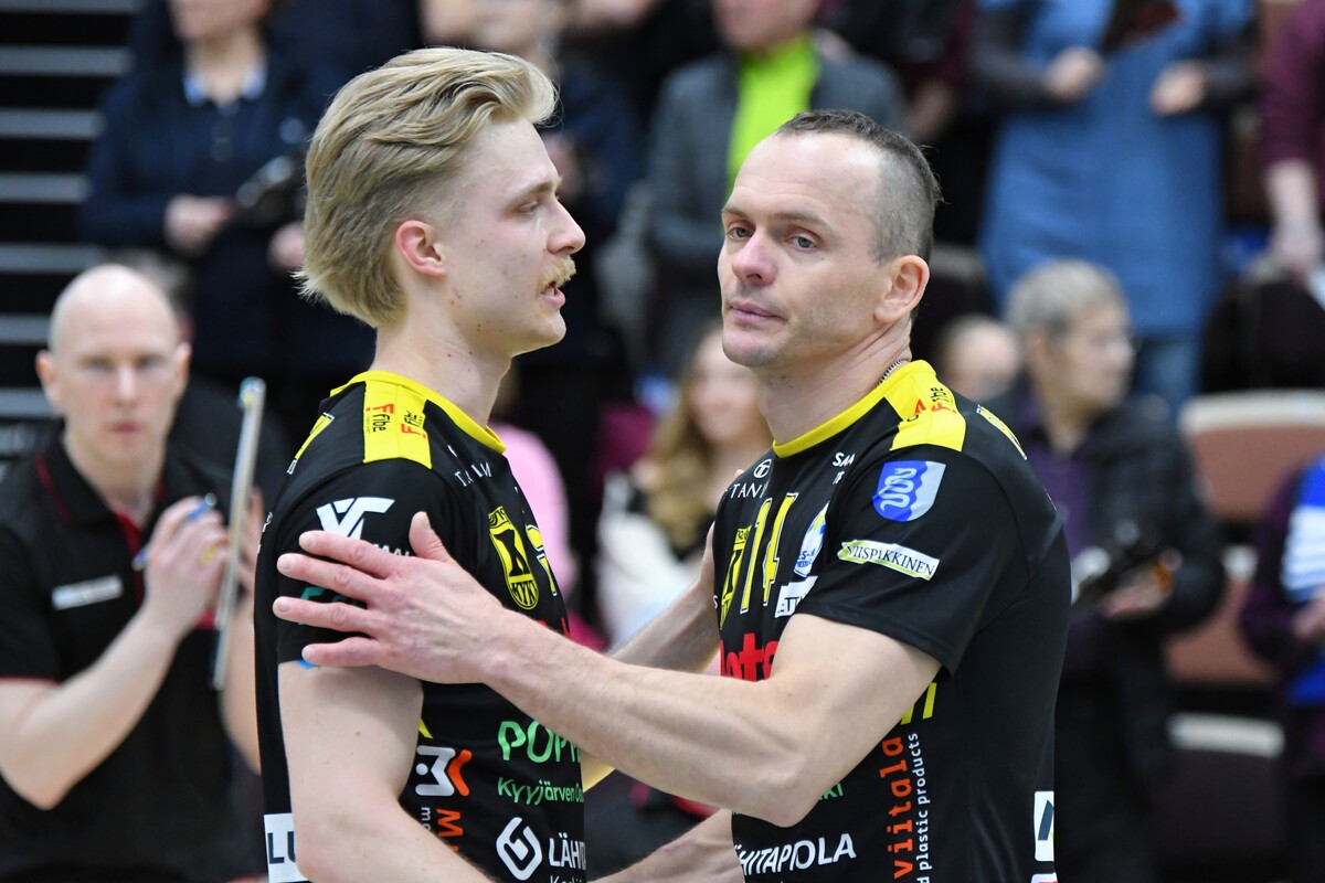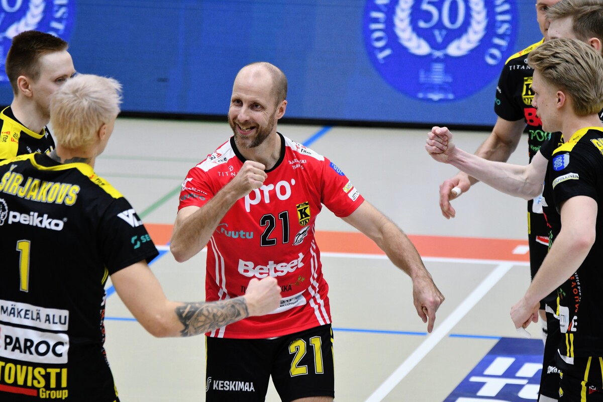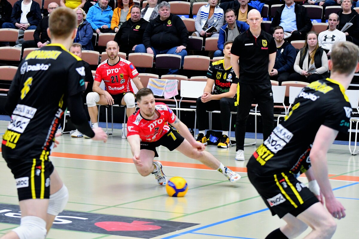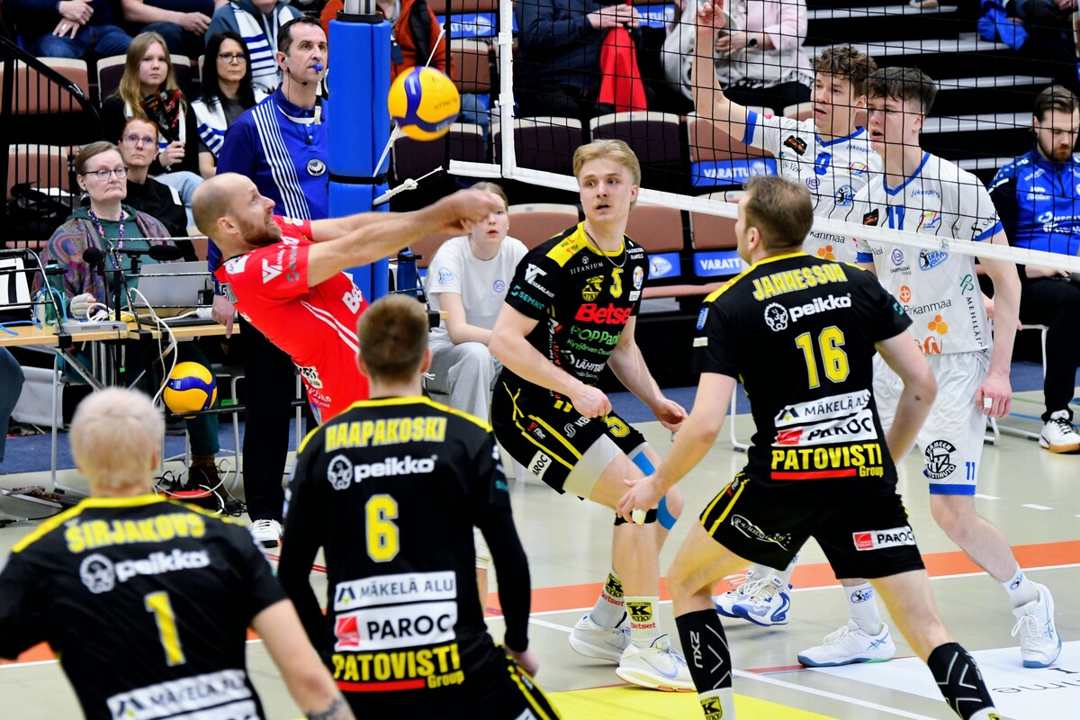 Akaa-Volley vs KyKy-Betset 3-1 (25-22, 21-25, 25-18, 25-9) Keskiviikon kolmas puolivälieräkamppailu päättyi akaalaisten 3-1 (25-22, 21-25, 25-18, 25-9) voittoon. Näin Akaa-Volley jatkaa välieriin ja KyKy-Betset saa aloittaa kesäloman. Ottelun avauskuusikoissa ei ollut yllätyksiä. KyKy tuli kehiin vakiokuusikolla. Oikeastaan ainoa kysymysmerkki oli toisen yleispelaajan kohdalla. Tällä kertaa Yaroslav Horobets ilmestyi kentälle ja Aivars Petrusevics jäi lämmittelemään vaihtonurkkaukseen. Akaa-Volleyn passarina aloitti Leevi Väänänen, Sakari Mäkinen sai laidalle kaverikseen Niklas Seppäsen ja keskipelaajista vaihtoon jäi Antti Taponen. Ykköserä alkoi tasaisesti. Tilanteessa 7-8 KyKyn David Jannesson tuli huoltoon kättään pidellen ja irvistäen. Keskipelaajan sormi oli mennyt sijoiltaan. Tilanteen jälkeen ottelun ote siirtyi hetkeksi Akaa-Volleylle. Mutta vain hetkeksi. Niklas Seppänen vaihtui Oskari Sarajärveen, kun kotijoukkue oli tappiolla 14-16. Loppuerä menikin sitten akaalaisten piikkiin 11-6. Jannesson pystyi onneksi peliä jatkamaan ja tuli takaisin tositoimiin erän lopulla. Toinen erä oli melkoista aaltoliikettä. Ensin KyKy-Betset otti selkeän johtoaseman 2-7. Sen jälkeen Antti Ropposen syöttövuorolla Akaa-Volley teki kuusi pistettä ja nousi tilanteeseen 8-7. Seuraavat pisteet kirjattiin jälleen KyKyn tilille 1-6 ja taululla siis lukemat 9-13. Loppuerä meni KyKy-Betsetin hallitessa pelitilanteita. Edes Akaa-Volleyn Jani Niskakankaan ottama tuplavaihto numeroissa 15-20 ei kääntänyt ottelun kulkua. Erästä voi lisäksi mainita Mäkisen saama keltaisen kortin. Akaalaisten näkemyksen mukaan KyKy-Betsetin torjuma pallo meni rajojen ulkopuolelle. Tuomaristo oli eri mieltä ja Mäkinen protestoi tilannetta hieman liian pitkään. Kahden erän jälkeen kyyjärveläisten syöttötilasto oli mairitteleva. Jokainen valmentaja olisi joukkueestaan ylpeä, kun ainoastaan viiden syöttövirheen oheen kirjataan seitsemän ässää! Kolmatta erää vietiin akaalaisvedossa koko matkan. Tällä kerralla KyKy-Betsetin valmentaja Aapo Rantanen herätteli joukkuettaan tuplavaihdolla. Mutta tulosta ei syntynyt. Erä päättyi Ropposen näyttävään rajalyöntiin kakkosnurkasta. Neljättä erää pelattiin niin sanotusti yhteen maaliin. Vain 18 minuutin mittainen erä päättyi akaalaisten murskavoittoon 25-9. Ottelun lopulla Sarajärvi huudatti yleisöä parilla näyttävällä ässäsyötöllä. Ottelu päättyi Horobetsin hyökkäysvirheeseen. Ottelun jälkeen Akaa-Volleyn Sakari Mäkinen kiitteli joukkueensa laajuutta ja vastustajaa parempaa rutiinia. - Näytti vähän siltä, että kaverilta alkoi takki tyhjentyä kahden erän jälkeen. Kolme tiukkaa peliä viiteen päivään suosii meitä. Laajalla rosterilla voidaan pelaajia vaihtaa tarpeen mukaan. Kyllä itsekin otan mielelläni vastaan nyt muutaman päivän huilin ennen välieriä. KyKy-Betsetin passari Niko Haapakoski myönsi ottelutahdin kovuuden. - Kaksi erää jaksettiin vääntää, mutta sen jälkeen alkoi huomata, että porukka väsyy. Kyllä Sirjakovsia alkoi kova kuorma jo selvästi hapottaa enkä saanut muistakaan hyökkääjistä enää tehoja irti. Ottelun MVP:t: Antti Ropponen, Akaa-Volley, Niko-Matias Puhakka, KyKy-Betset. Ottelun tilastot: Competition Site by Data Project Ruutu+: Huippuhetket: Akaa-Volley - Kyky-Betset 1.4.2026 (3. puolivälierä) | Ruutu Ruutu+: Kyky-Betsetin Niko Haapakoski studion haastattelussa | Ruutu Ruutu+: Mestaruusliigan Ottelut, sarjataulukko, tilastot: Competition Site by Data Project KyKy-Betsetin Ottelut Ja Sarjataulukko Kaudella 2025-2026: https://kyky-betset.sporttisaitti.com/ottelut-sarjataulukko/ |
