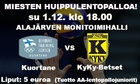 Kuortane FIN-18 vs KyKy-Betset Su 1.12. Klo: 18:00 Alajärven Monitoimihallilla