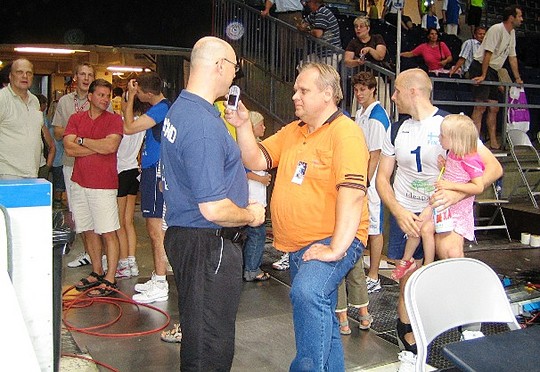 Lasse haastattelee Pläkiä Järviradioon, Kangasniemi odottelee vuoroaan.
